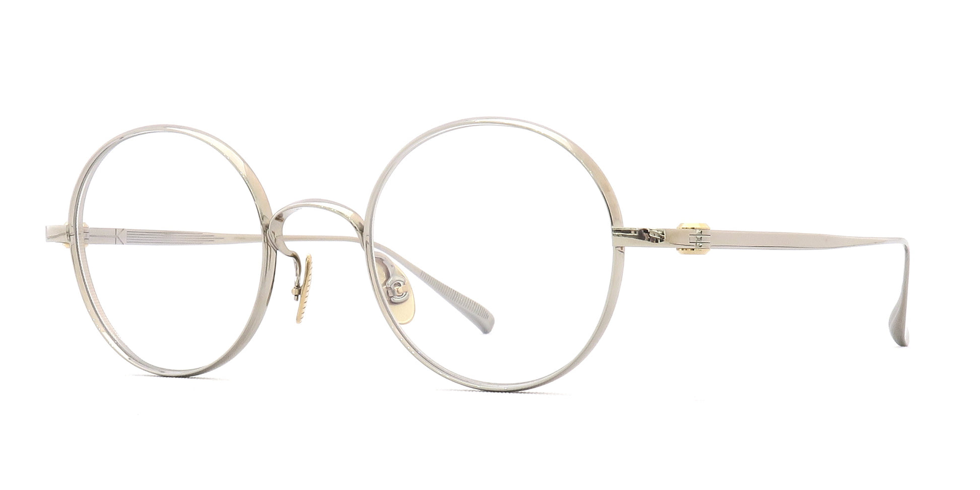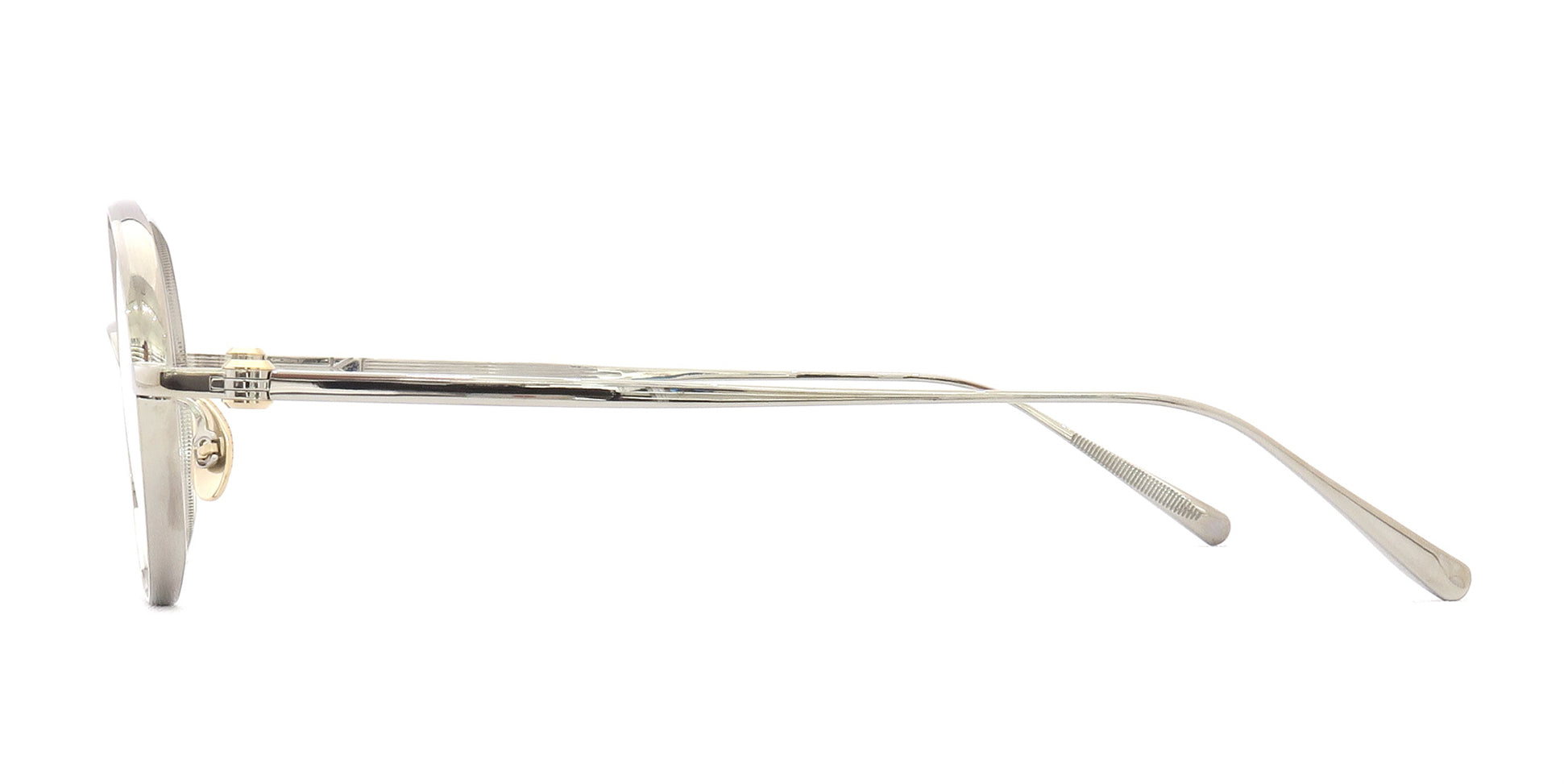 リム、テンプル外側の柔らかい丸みのあるラインと、チタンの質感が相まって、非常に美しい眼鏡と感じさせてくれます。